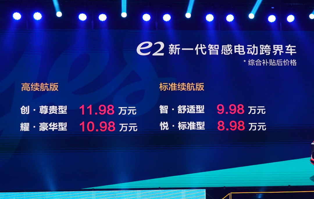 日前,比亚迪e2正式上市,官方指导价为8.98-11.98万元,共有4款车型。比亚迪e2定位为两厢紧凑型车,基于比亚迪e平台打造,是继e1、S2之后e系列的第三款新车。在电池以及续航里程方面,新车搭载70kW电机,配备35kW·h/47kW·h两种规格电池,续航里程对应为305km和405km。新车还配备10.1英寸自适应旋转悬浮Pad和比亚迪DiLink 2.0智能网联系统。此外,官方推出“20%首付18期免息”、“最高60G免费流量”、“6年或15万公里电池质保”、“免费赠送充电桩”等5重最高价值14000元的购车好礼。