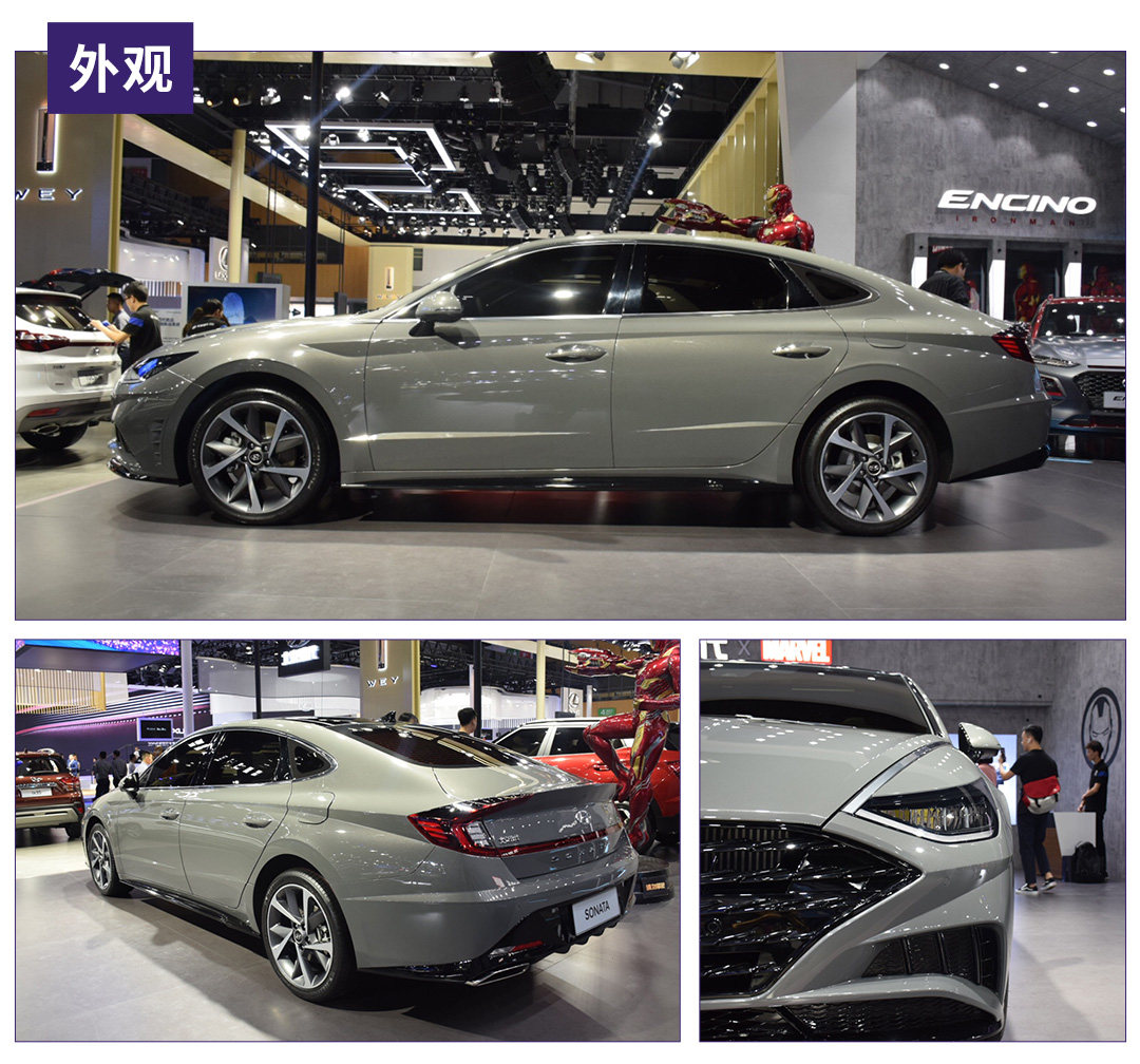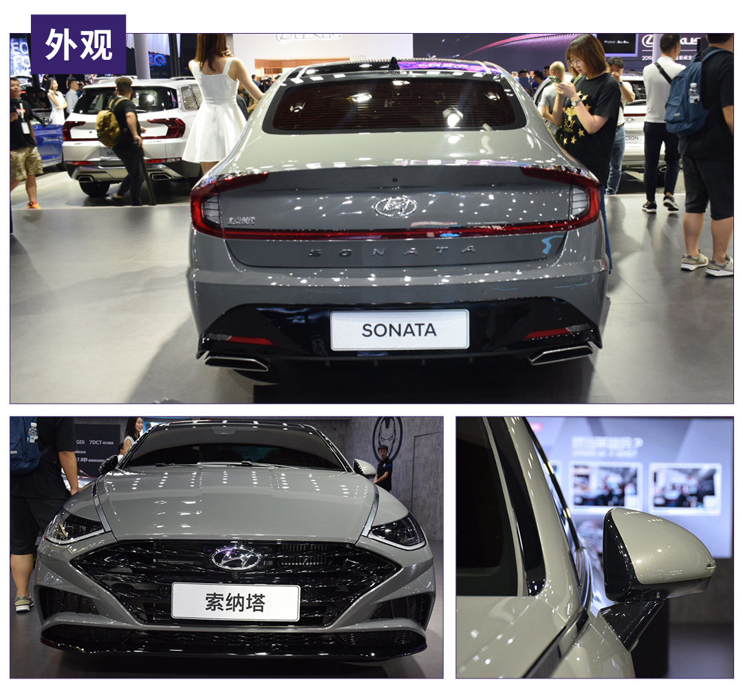 新车采用全新设计的灵感源自Le Fil Rouge概念车,并基于现代的“Sensuous Sportiness”设计理念所打造,更加注重运动、时尚以及年轻化元素。与北京现代前面几款新车型一样,全新索纳塔采用大嘴式进气格栅。对于部分消费者而言,则需要一定的时间来接受这个比较浮夸的前脸。新车狭长的灯组内置四颗大小不一的LED灯源,并形成矩阵式设计;而隐藏式日间行车灯很有意思,在关闭和开启都有不同的视觉效果,关闭时与镀铬装饰条融为一体,开启时则充分发挥日间行车灯的作用。