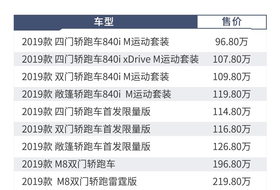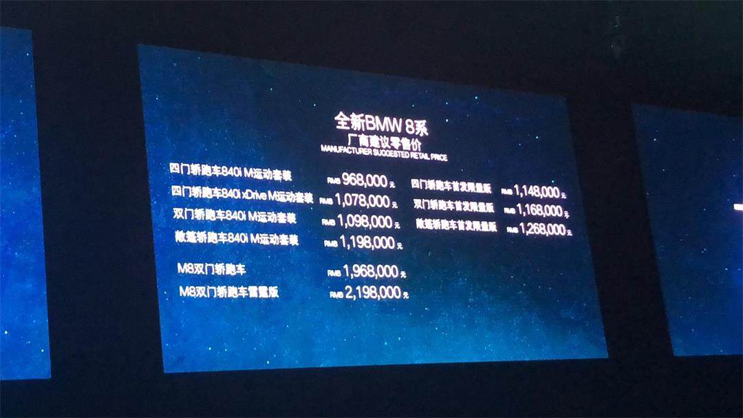 作为宝马的顶级旗舰产品,时隔20年后,宝马8系轿跑车家族终于迎来了回归。就在热火朝天的成都车展前一天,宝马8系家族正式上市,新车共推出9款车型,售价96.8-219.8万元。