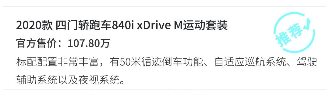 最后说下推荐车型,教授在前文也提到过了,更加喜欢4门版本的轿跑,所以推荐四门轿跑车840i xDrive M运动套装,不仅动力强还兼顾四驱,再顺便选择一款普通点的车身颜色,低调才符合教授的气质!(别做梦了,谁来把教授滋醒)