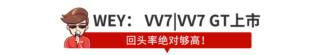 国产自主豪华品牌WEY VV7正式上市,2020款VV7系列推出3款车型,售价区间为16.98-18.88万元;VV7 GT推出2款车型,售价区间为19.18-20.58万元。新款WEY VV7在外观上与现款车型区别不大,不过在细节方面有了一定的调整,虽然WEY VV7的外观不太引人注目,但是WEY 全新推出的轿跑SUV VV7 GT回头率实在太高,性感的“翘臀”,实在是让人喜欢。内饰上换装了全新的12.3英寸中控大屏,比现款更大更有科技感,而且配置上也相应加入了很多“黑科技”,豪华配置应有尽有!动力上也有非常大的改变,2020款的VV7和VV7 GT都换装了国六标准2.0T发动机,功率上比现款少了7kW/5Ps,但扭矩被加大至385N·m,同时峰值输出区间也被调整为1800-3600rpm,新款车型低扭表现会更加出色。WEY VV7已经低迷了好长一段时间,此次全新的车款上市,是否能够重回巅峰呢?走着瞧吧!