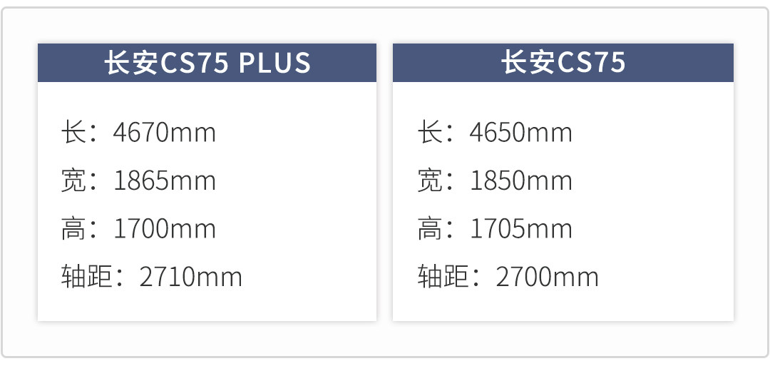 对比后发现,长安CS75 PLUS的车身尺寸和轴距相比CS75并没有很大的提升,但考虑到CS75在紧凑型SUV当中的车身尺寸和空间已经属于上乘表现,即便不做较大提升,CS75 PLUS依旧能满足日常用车的空间需求与乘坐舒适性。