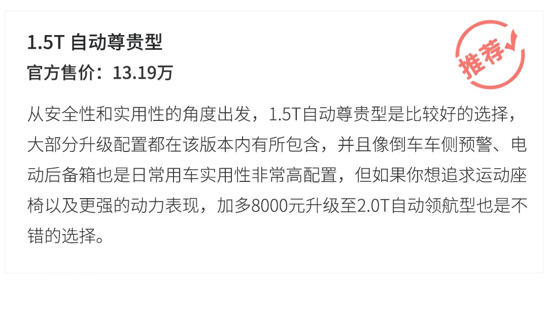 在6款车型中,旗舰型的配置水准相较于尊贵型甚至是领航型都有非常明显的提升,不过像官方主打的双12.3英寸液晶屏以及车内氛围灯等配置都要在旗舰版车型才有所涵盖,但仔细想想这些配置又并非日常驾乘中用途十分大的配置,这些配置没能够得到比较好的下放实属可惜。