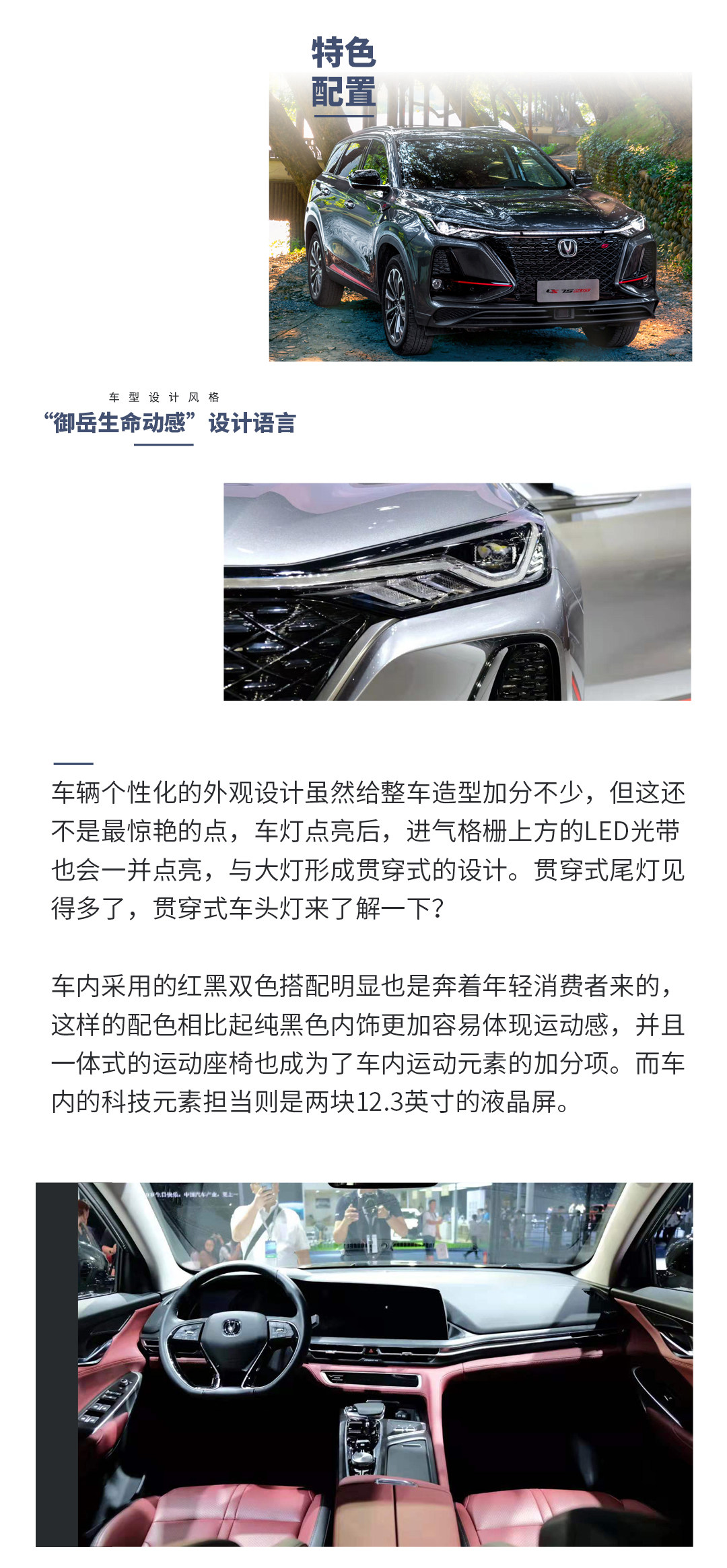 其实CS75 PLUS和CS75的差距还是非常大的,仅从外观设计上根本看不出这是一款CS75的升级版,更像是一款全新车型,并且外观设计更加运动且年轻化,车身外观上一些红色的饰条甚至有点雪佛兰Redline系列的味道。