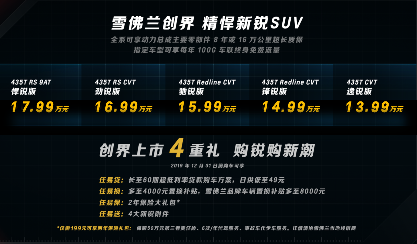 新锐,是冲破界限的果敢,亦是力求不凡的态度。雪佛兰精悍新锐SUV创界将凭借更强劲的动力性能、更精准的操控表现、更优异的燃油经济性,以全面领先同级的产品实力为社会新锐群体带去不断前行的力量与勇气。不断扩充的雪佛兰SUV家族,也将以更强悍的产品阵容,陪伴年轻消费者们一起迎接未知挑战!