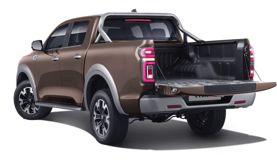 长城炮货箱尺寸为1520*1520*538mm,标配阻尼后尾门、隐藏式踏板、坡道梯卡槽,可选装不同形式的货箱盖。