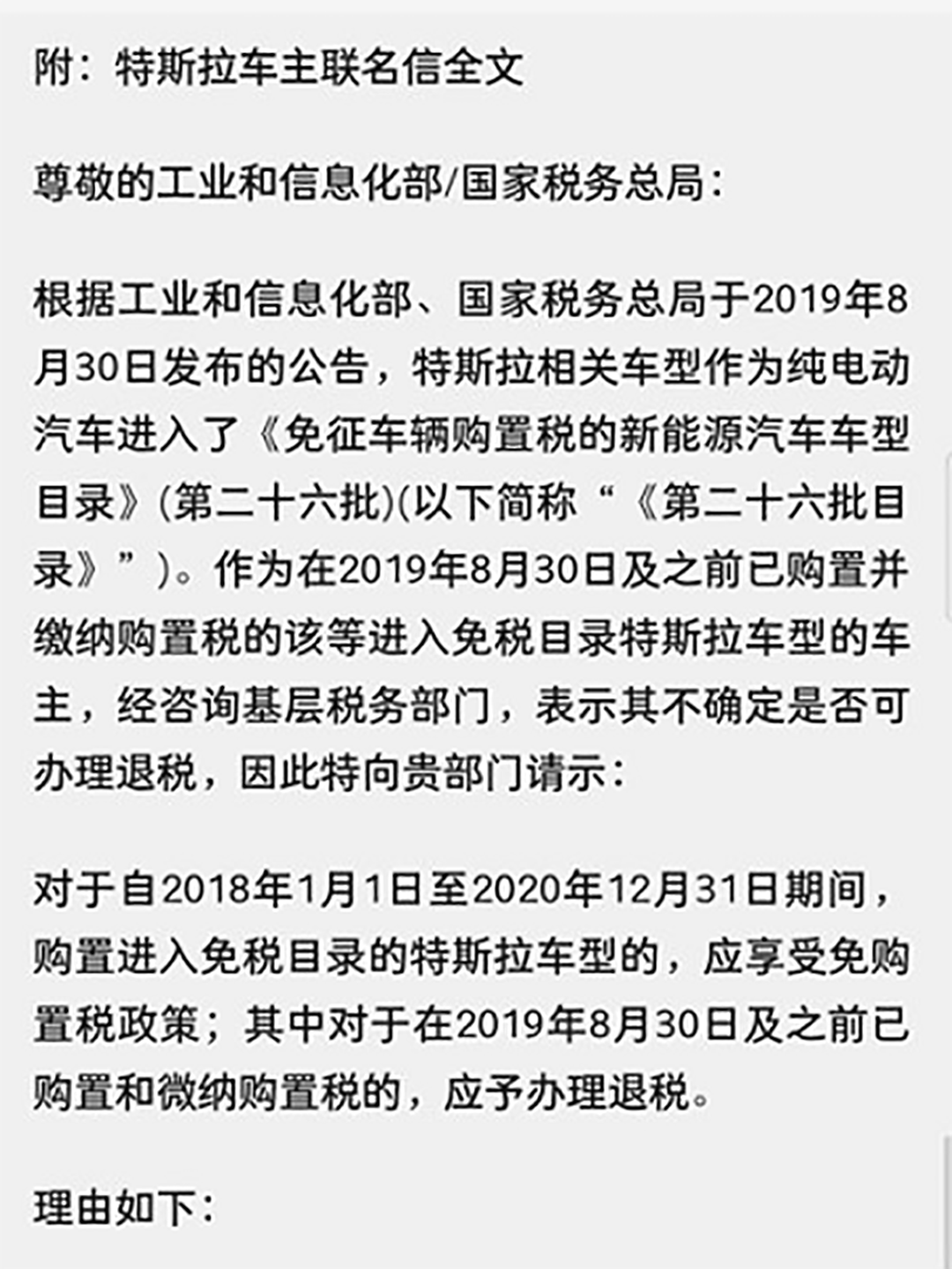 近日,特斯拉宣布全系车型入选《免征车辆购置的新能源汽车目录》,该举措意味着可免除10%的汽车购置税,最高节省9.9万元,政策将持续至2020年底。由于车型价格波动较大,引起部分特斯拉车主不满,网上传出《特斯拉车主联名信》,质疑特斯拉“隐瞒”购置税的问题,车主要求特斯拉给予办理退税。对此,特斯拉中国回应称:特斯拉曾多次进行免征购置税目录申请,但是最终能否进入目录特斯拉并没有决定权,也无权对外发布任何相关信息。最终申请结果由相关部门决定,特斯拉并不存在所谓故意隐瞒信息的情况。