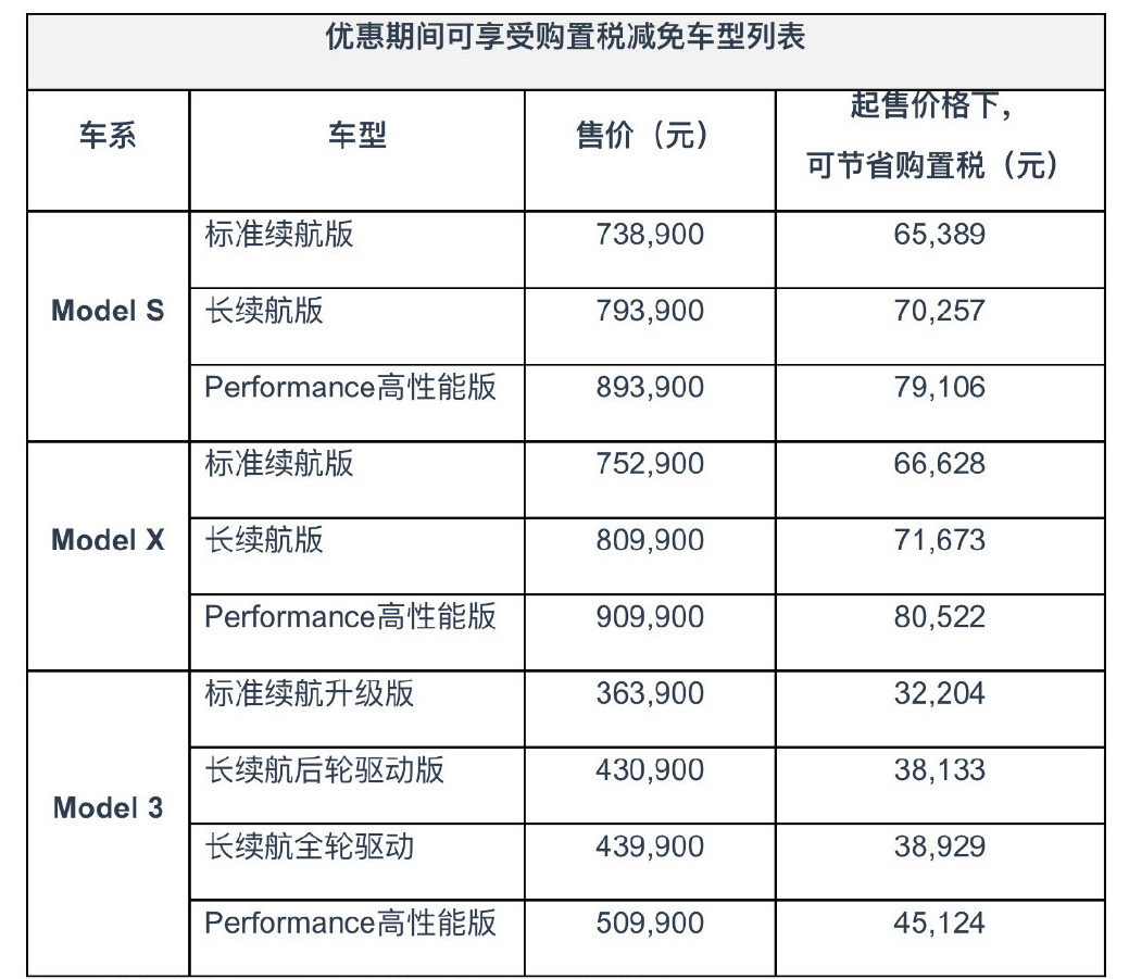 2、可免除10%的汽车购置税,特斯拉又又又“降价”了