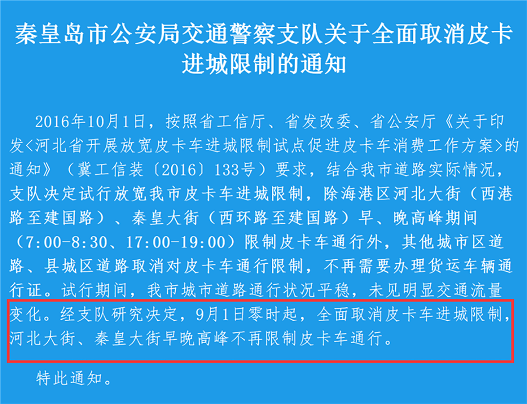 1、河北省秦皇岛全面解禁皮卡,下一个皮卡解禁城市又是哪个?