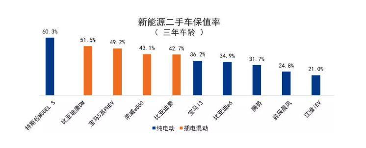 哪怕是与保值率向来偏低的自主品牌轿车对比,在TOP10排行榜中排名第十的菱锐三年保值率还能剩余53.27%。如此看来,新能源二手车保值率整体表现实难与传统燃油车相提并论。
