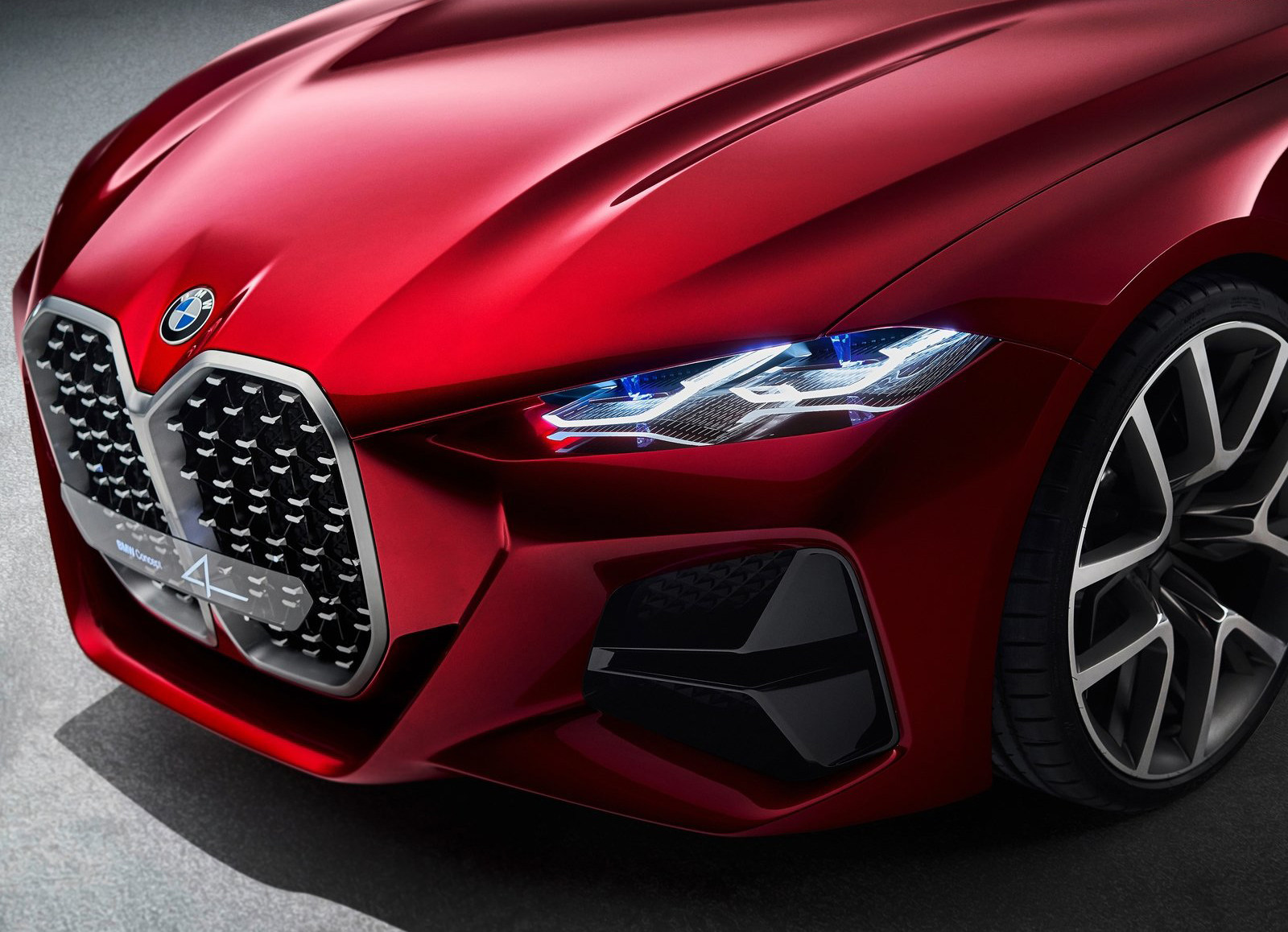 第一眼看到新4系概念车,都会被它这两个巨大的双肾进气格栅所以吸引,这么夸张的设计教授觉得,未来的量产车是难以采用的,虽然是辨识度极高。进气格栅内部采用点阵式的设计,细看之下,精致感倒是不错的。