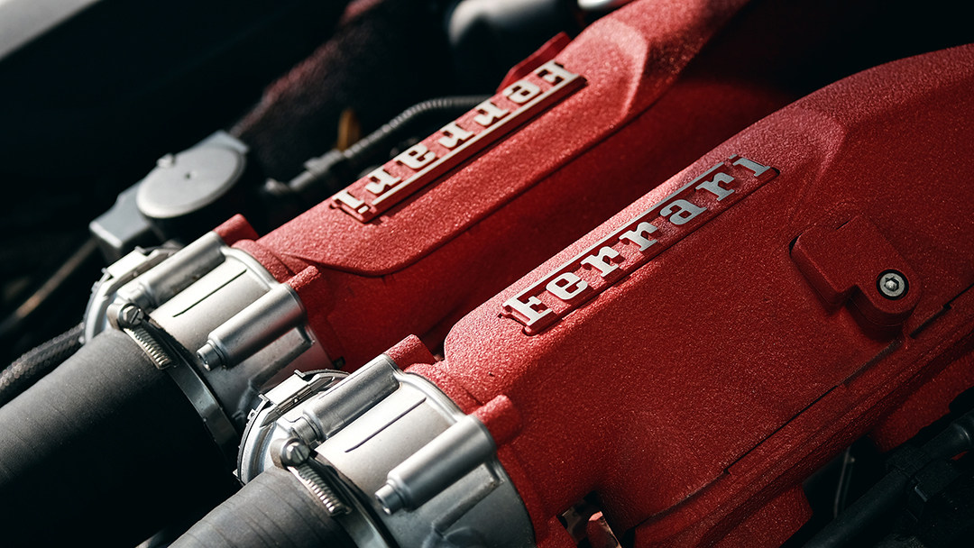 玻璃引擎盖下高调展示的Tipo F131 3.6公升V8引擎,搭配6前速半自动变速箱,亦代表着源自一级方程式的先进技术在21世纪给法拉利超级跑车带来的性能升级。