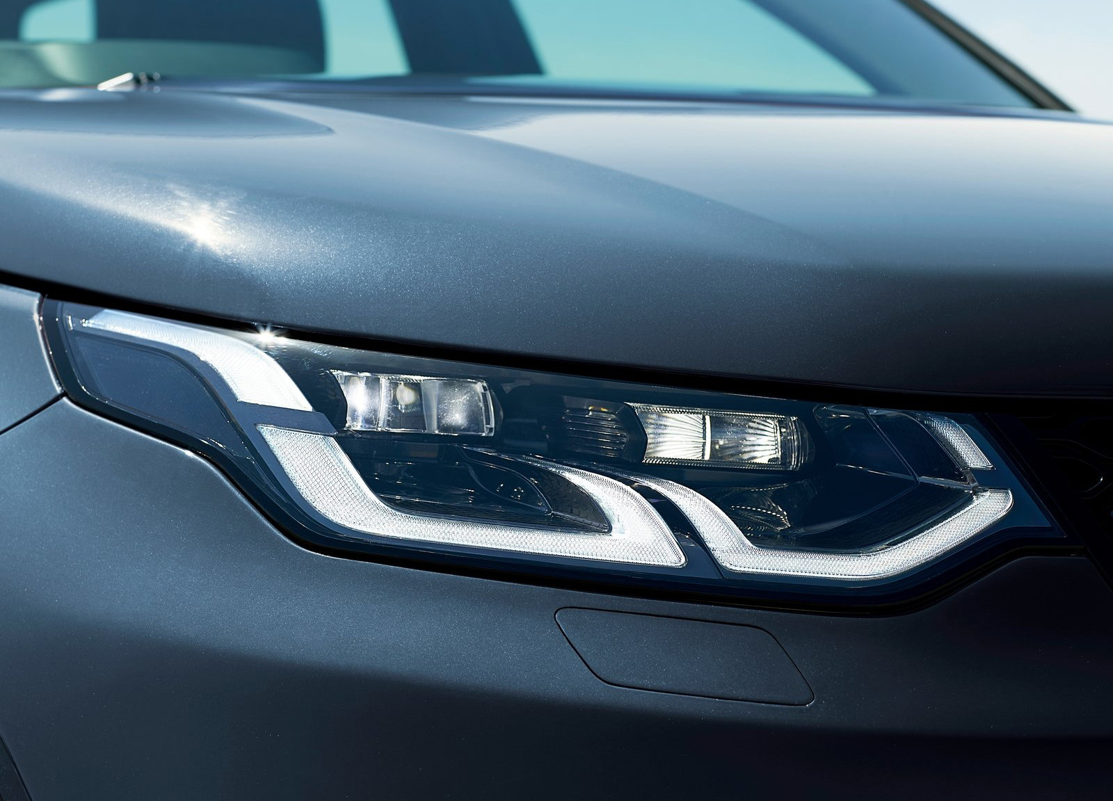 新款发现神行的前脸做了挺多的改动,路虎家族标志性的镂空格栅面积增大,边缘由黑色饰条包裹,呈现出更加扁平化的倒梯形。全新的LED前大灯组,类似双U型的日间行车灯十分醒目,让新车的前脸看上起更加年轻时尚。左右两侧的雾灯区域也有所改动,由之前的整块开孔设计,变成了C字型设计,雾灯被独立出来,单独设置在了下保险杠中,与下保险杠融为一体,这样的做法能让新车的前脸更加简洁耐看。