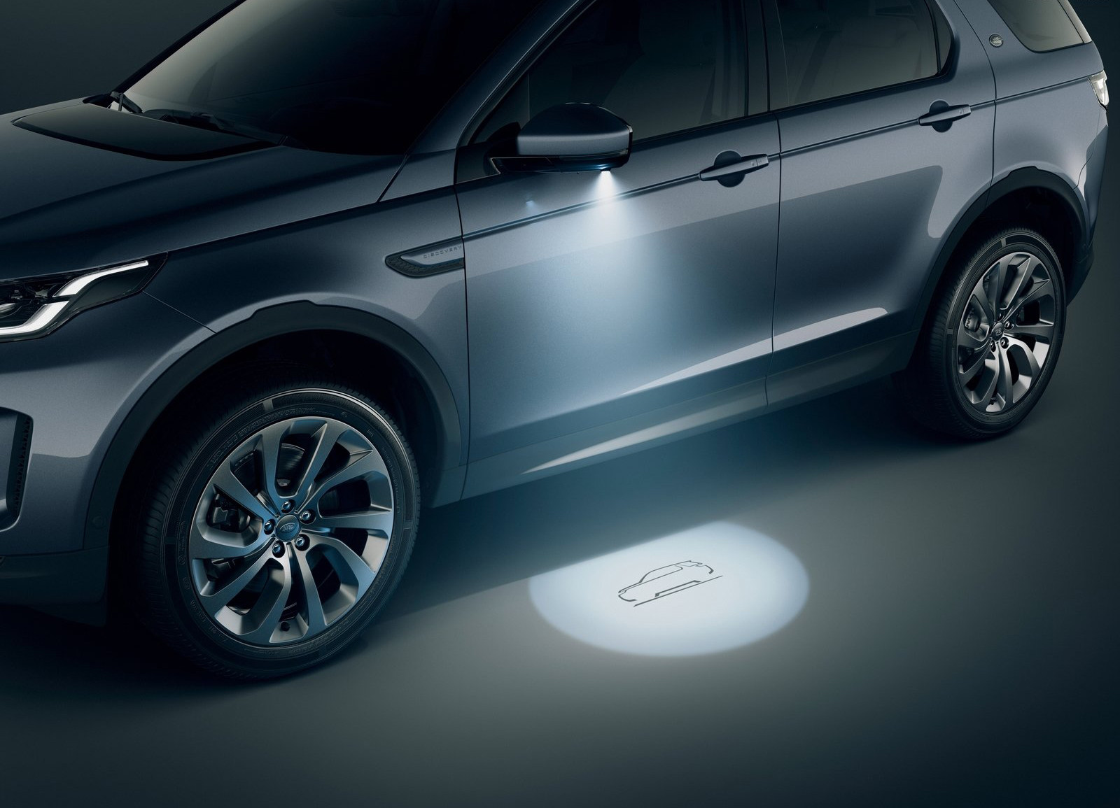 新车还有个小惊喜,外后视镜上能在地上投影出自己的简笔设计图,很有心思的一个设计。