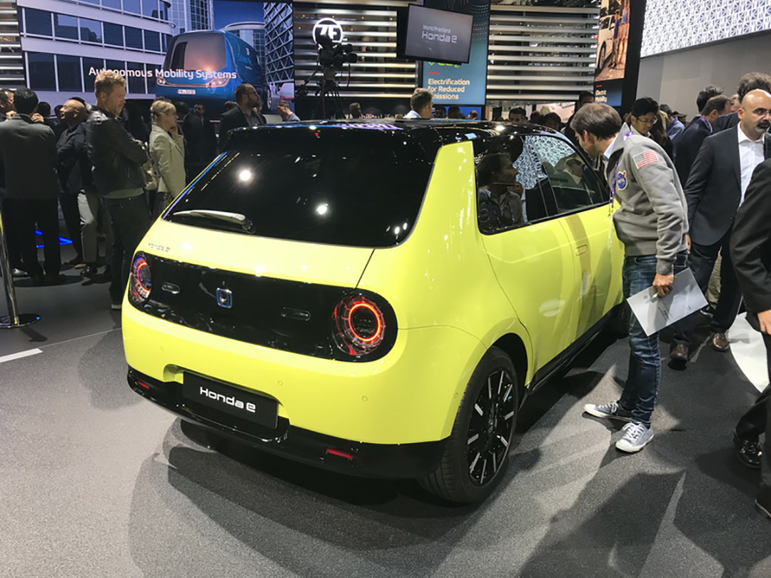 在法兰克福车展上,本田带来了量产版的Honda e。据官方介绍,本田计划在欧洲市场100%产品电动化,Honda e在其中将扮演着重要角色。新车外观与此前公布的Honda e Prototype 基本相同,内饰则是由5块屏幕组成,长度贯穿整个中控台。中间三块屏幕为12.3英寸的液晶和中控显示屏,左右两边的屏幕为电动后视镜。新车提供最大功率分别为100kW和113kW两种选择,前者的售价29470欧元,后者售价32470欧元。新车电池容量为35.5kWh,快充至80%电量需要30min,不过新车的续航里程仅有220km。值得一提,新车前后均采用独立悬挂,并且悬挂部分零件使用了铝合金材料,配合50:50的车身重量分布,在操控和性能上面将会有不错的表现。新车仅在欧洲市场销量,计划在2020年夏季开始交付。总体来看,Honda e续航里程显然未能达到主流的水准,不过外观和内饰的创新度值得表扬,而本田全面电动化的消息,可能会让本田粉感到失望了。(图片:汽车之家,本田)