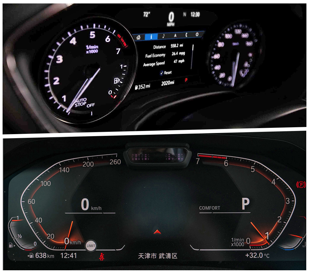 CT5全系车型的仪表盘都采用机械指针+中央小液晶屏的设计,样式偏经典,科技感相比3系的全液晶仪表盘差了点(机械党的福利)。