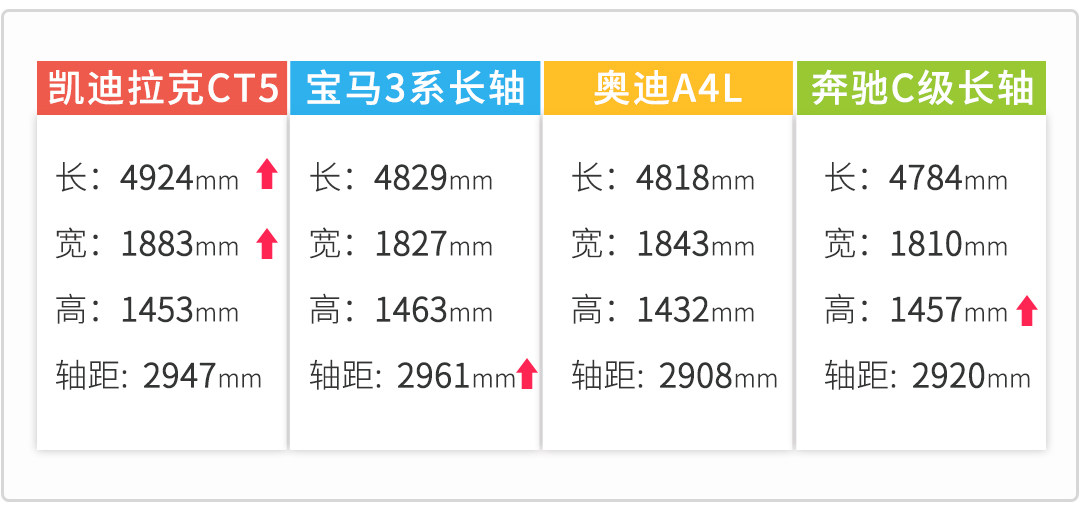 CT5的宽度和长度均领先3系,但轴距落后,在没有机会试乘的情况下,仅凭数据对CT5的乘坐空间“云评测”是不负责任的行为,因此这里不下定论,但CT5在乘坐空间上超越3系长轴的可能性不高,因为CT5的轴距不及3系,并且3系的腿部空间、座椅长度方面在同级皆领先(超越了A4L和C级),配得上“小5系”的称号。