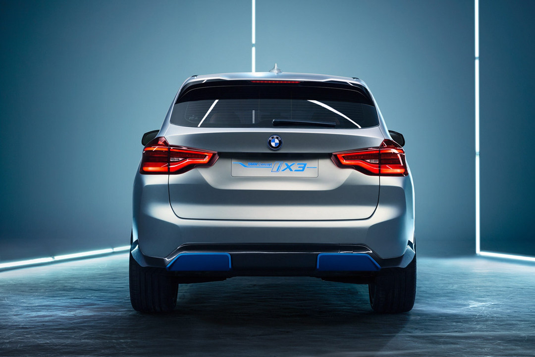 尾部造型跟X3保持高度一致,除了将保险杠下方的排气装饰更换成蓝色装饰以外,其余部分没有特别明显不同,连尾灯都是使用同款设计,没有特别凸显iX3的新能源身份。