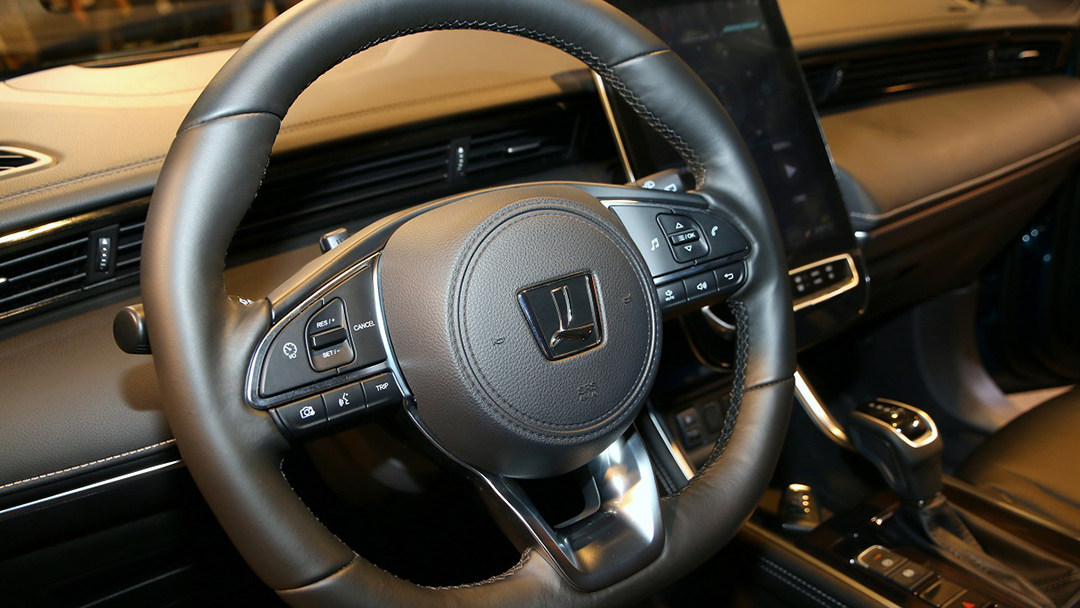 12寸中控屏幕虽然尺寸大,但同时也有不小的边框,加上下部的物理按键,颇有一种5年前触屏手机的感觉。它其实更像是一台大车pad,支持亿联手机互联,不支持国内消费者更常用的Carplay以及Android Auto互联映射。