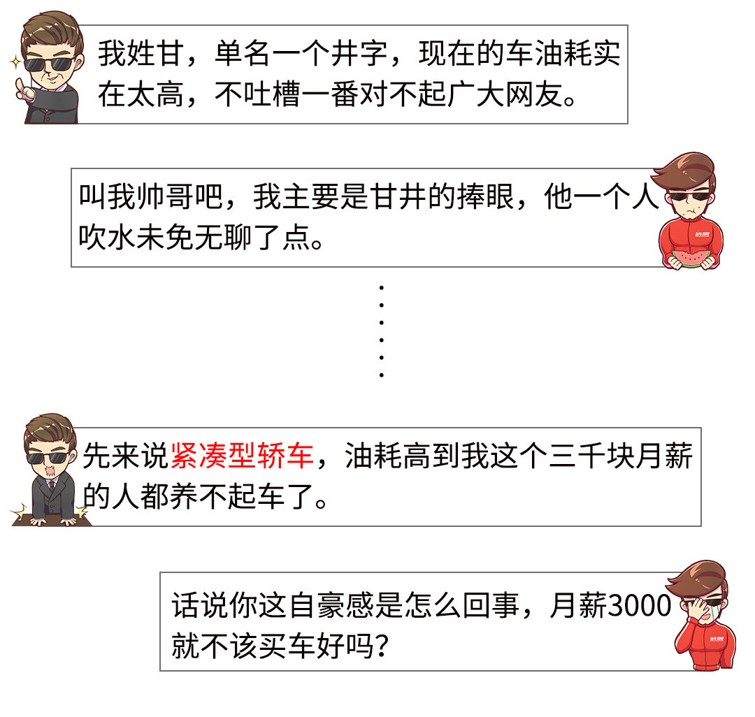 各位是不是想打人?不过你们仔细一想是不是觉得有点熟悉,毕竟教授每次回评论的时候都有人说某辆车的油耗高,而且绝大部分车型都中过枪,不管油耗多优秀,在网友眼里都是高的。像甘井一样这么挑剔可是会错过很多东西的,也不可能买得到车,眼界要放宽些。