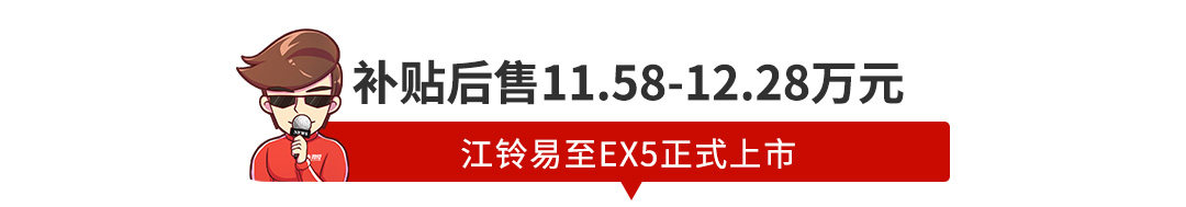 日前,江铃旗下纯电动小型SUV江铃E400正式更名为EX5并正式上市,新车共推出4款车型,补贴后售价为11.58-12.28万元。新车外观上并没有十分明显的改变,新车升级主要在于电池容量之上,4款车型电池容量均升级为55kWh,电池容量的提升使得EX5的综合续航里程提升至405km,此外,新款车型快充从30%电量充至80%仅需40分钟。
