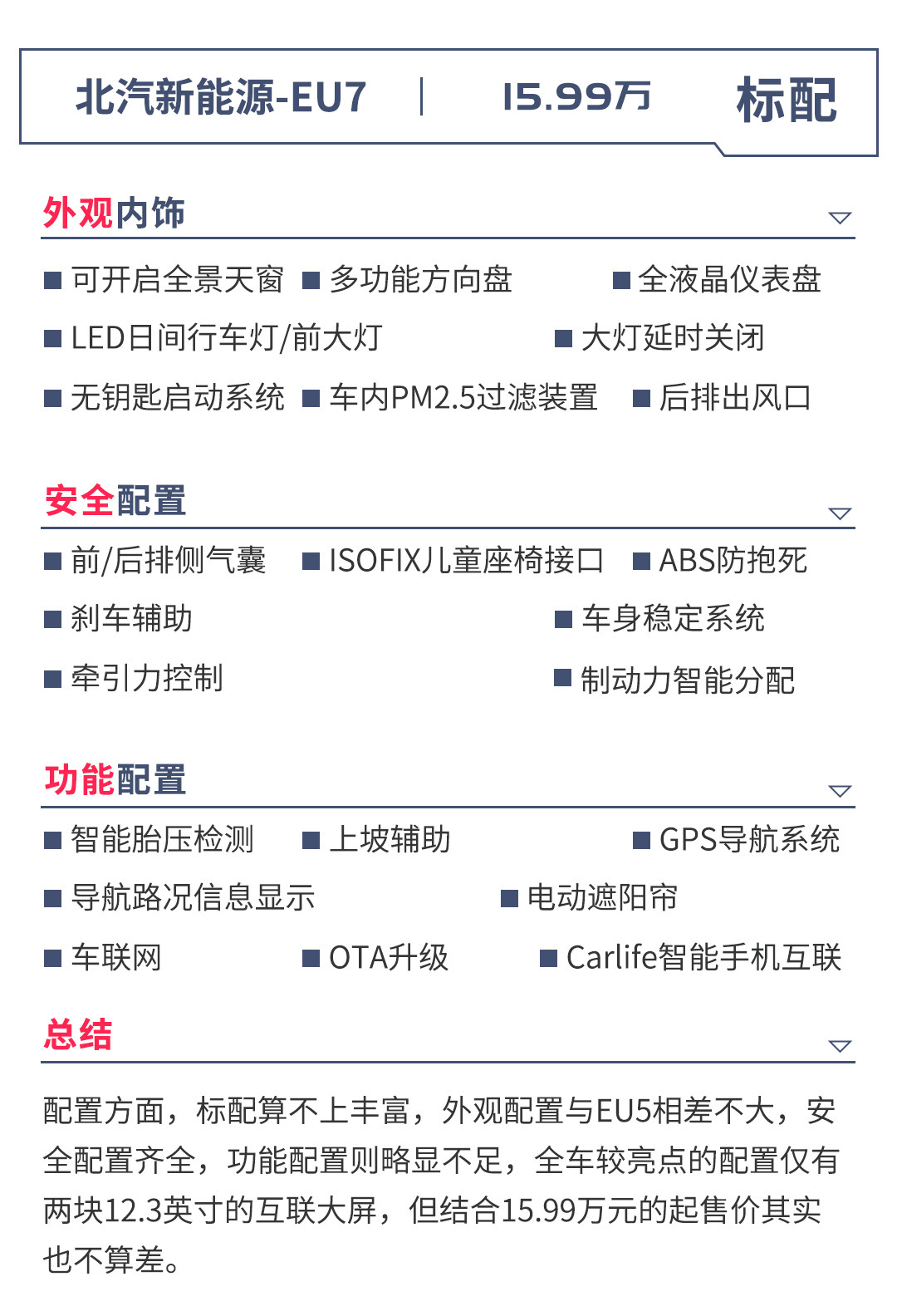 但享受新能源政策优惠的它更多地是想打价格差战略,从而吸引手上预算稍紧,但对空间有较大要求的消费者,也不失为一剂良策。北汽EU7,未来可期。