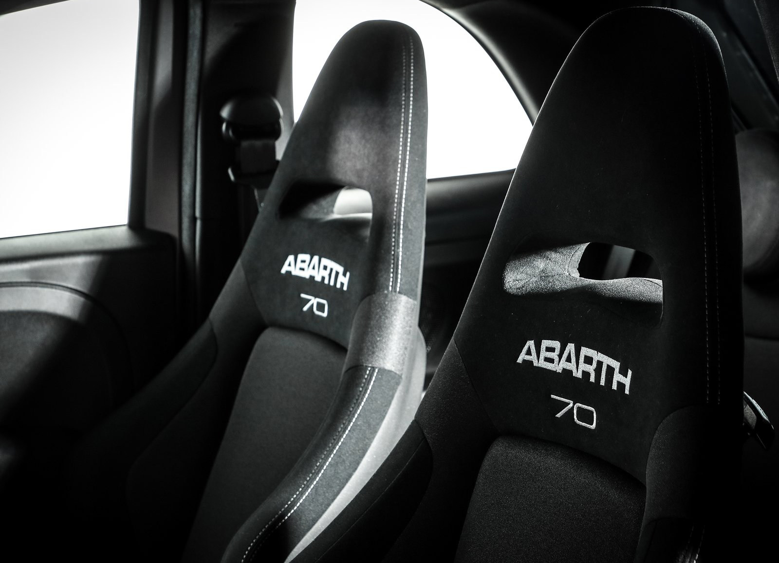 内饰方面,为了纪念意大利汽车制造商Abarth品牌70周年,新的赛车风格运动桶椅上加入了“ABARTH 70”字样的刺绣。中控台上配备一个7英寸触摸屏信息UCONNECT娱乐系统,支持Android Auto和苹果CarPlay智能手机连接。另外氙气大灯、后窗隐私玻璃、电动天窗、自动空调以及自动防眩目内后视镜等配置都是可以提供给消费者选择的。