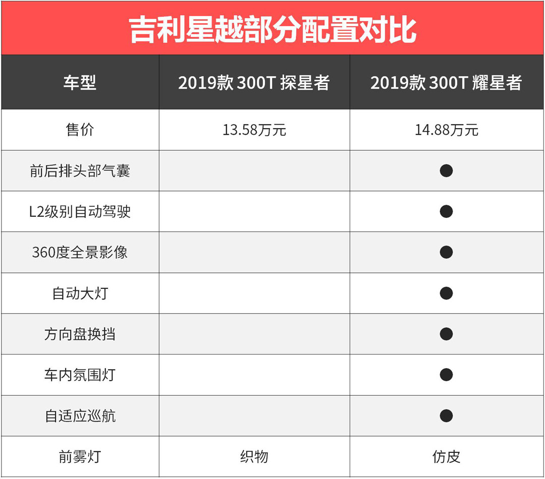 因此,探星者这配置存在的意义,更多只是为了拉低售价,与竞品车型的价格尽可能接近。而作为消费者,如果想买一辆星越,最起码也是买14.88万的耀星者起步。