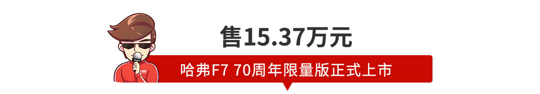 9月19日晚,哈弗F7 70周年纪念版车型正式上市,新车售价为15.37万元,限量发售777台。新车在车系高配车型的基础上加入了限量版独占配备,如金色车漆、附有70周年标识的迎宾踏板、座椅以及专属定制的多媒体开机画面等。动力层面,新车依然搭载能满足国六排放标准的2.0T发动机匹配7速双离合器变速箱。哈弗F7 70周年限量版意在庆祝中俄建交70周年,加上不久前哈弗F7已在俄罗斯同步上市,新车的推出颇有几分“外交”意味。