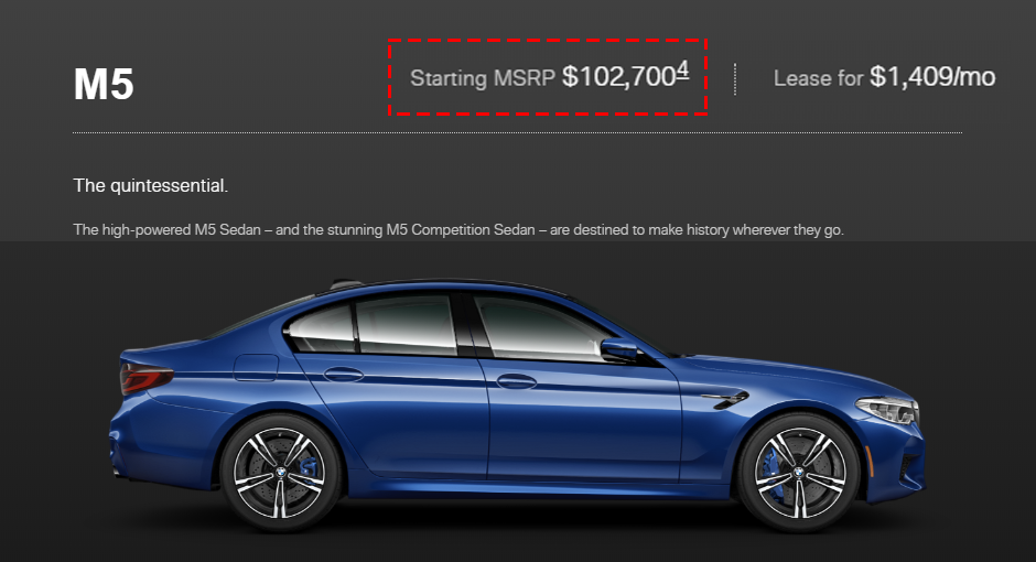 (国外的M5仅需10万美元,相当于4台卡罗拉的价格)