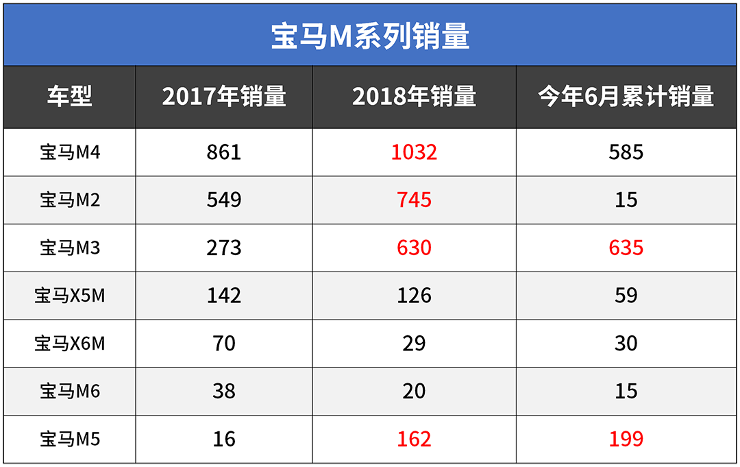 BBA阵营里面以宝马的M系列为例,这两年卖的最好的基本都是M3M4,除了这两款以外,最亮眼的是新一代的M5,销量随着产品力的提升而突飞猛进,但是总体来看,整体的销量表现其实算不上高涨,去年宝马的M系列已经增长超过48%了,M系列只占宝马总销量不到0.5%不到。