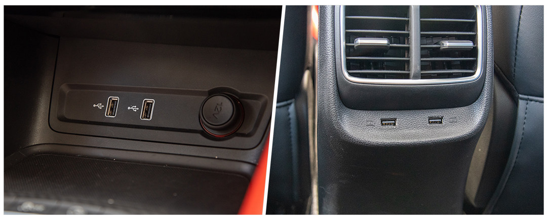 前后排各有两个USB插孔,实现人人平等。还怕不够?前排还有各12V的电源口。