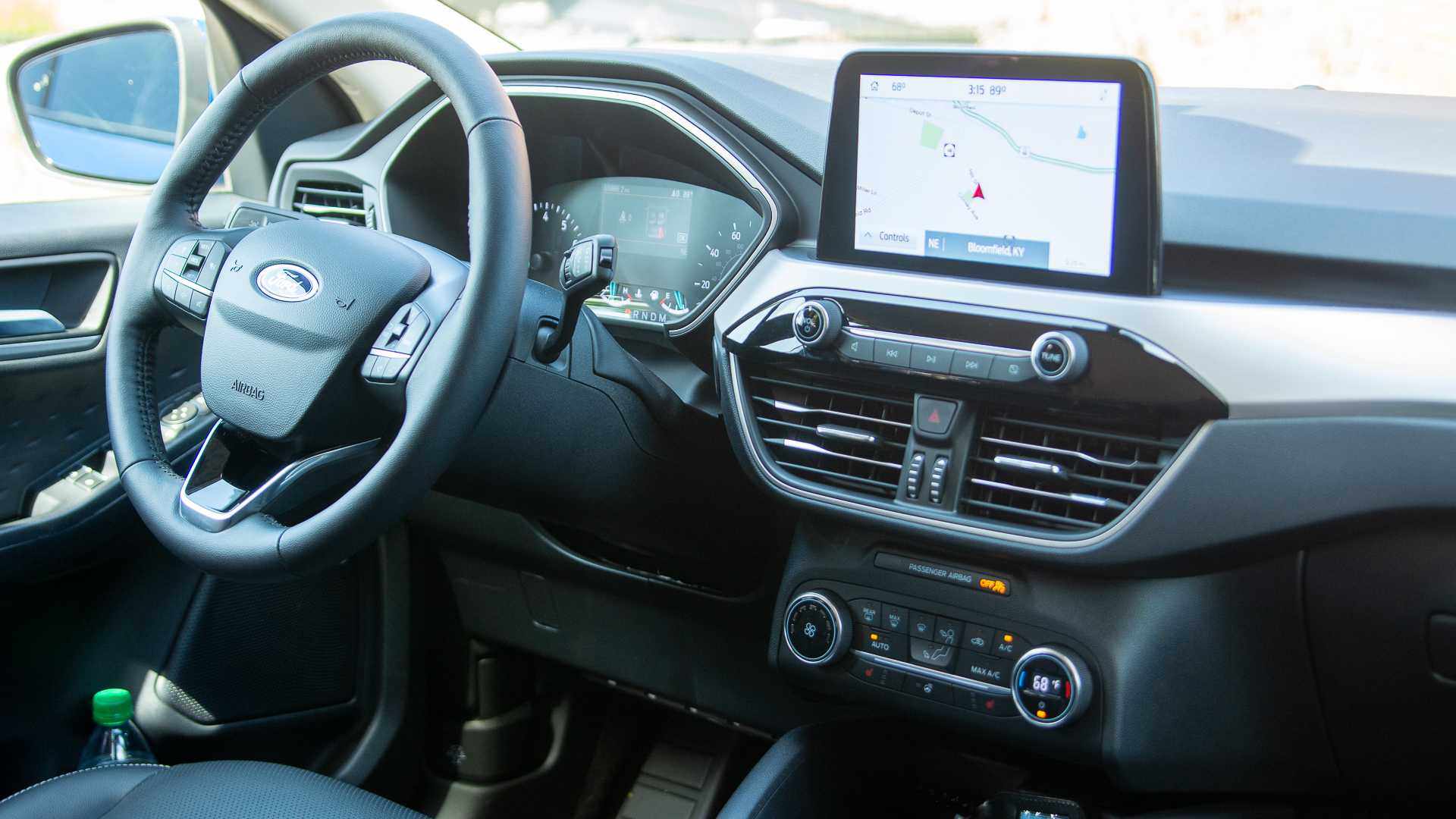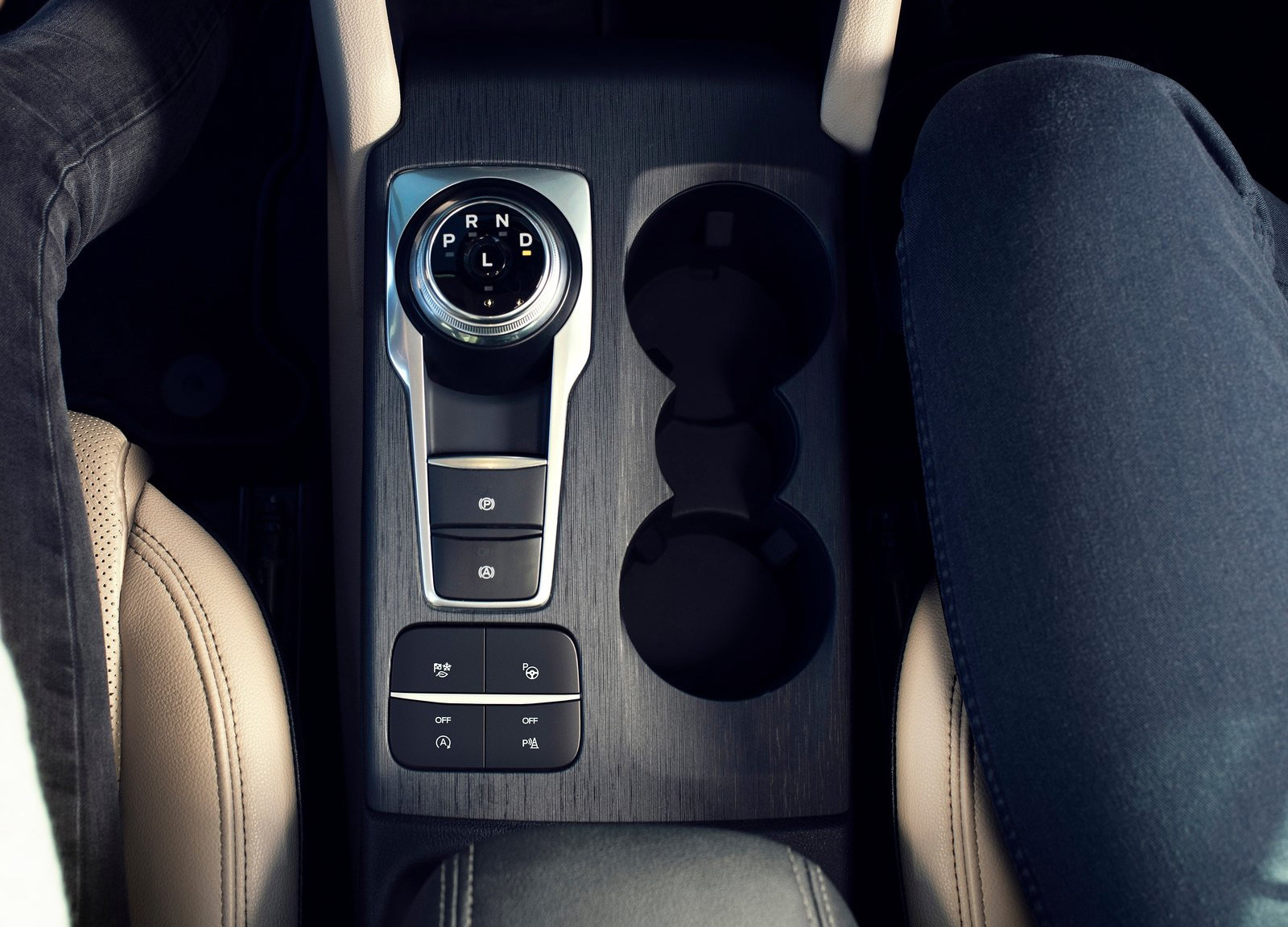 Escape的外观整体还算不错,但是来到车内部分,就有点让人失望了,塑料材质占据了内饰大部分地方,即使是在顶配上面也是如此,只有座椅和方向盘有真皮的包裹。门板上的有一大块打孔的装饰,质感并不好。在设计方面,福特Escape走的是简洁路线,一块8英寸的显示屏,下面是各类调节按钮、空调出风口,空调控制区域等,简洁明了。可以看到福特Escape采用了旋钮换挡、附近的电子手刹、自动驻车、发动机启停、停车辅助系统、驾驶模式选择、自动泊车辅助这些配置都有着大大的按钮,熟悉后甚至可以盲操作。