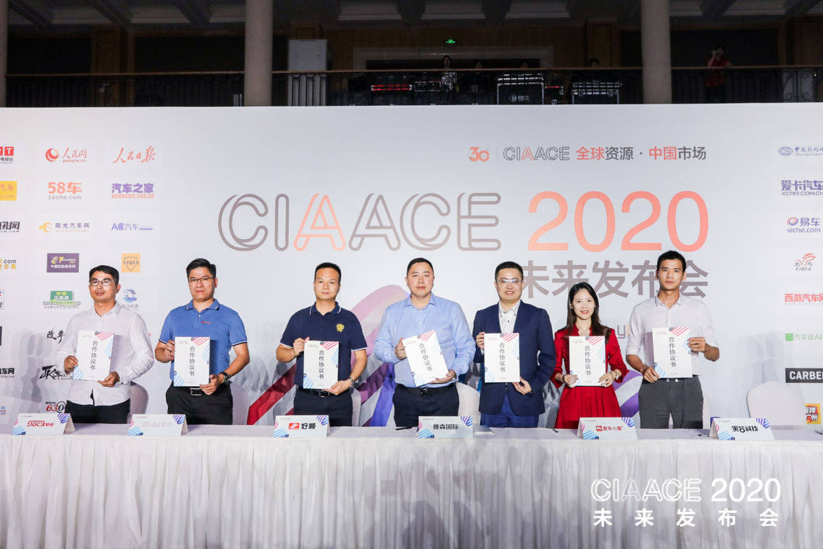雅森国际王国成、深圳智佑汽车科技有限公司曾裕、厦门黑谷网络科技有限公司包晓洁、广东好顺欧迪斯科技股份有限公司邓继勇、广州新格汽车用品有限公司雷招业、广州市佳尼士贸易有限公司钟瑞林、广东爱车小屋实业发展股份有限公司肖崇豪共七位领导共同登台签署战略协议。