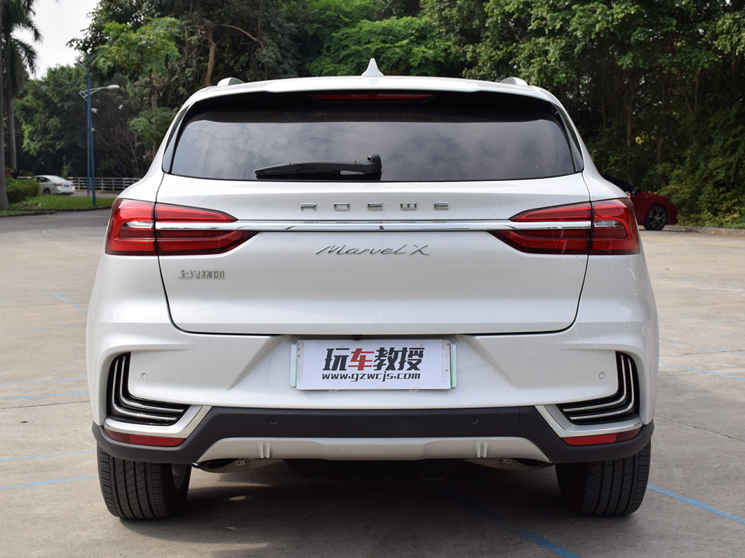 MARVEL X的车尾同样偏向传统,造型平庸的扰流板似乎没有Aion LX夺目,但MARVEL X属于耐看型,镀铬装饰条贯穿左右尾灯,并且取消了品牌logo,转而使用字母代替,同样彰显身份的MARVEL X标志放在显眼位置,也间接说明MARVEL X在荣威家族中的地位。