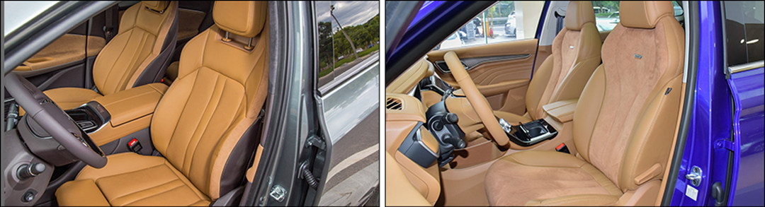 Aion LX的前排座椅舒适性几乎无可挑剔,无论是柔软程度、包裹性以及支撑性都达到了一个相当好的平衡,配合可以大幅度调节的方向盘,几乎每一个人都能轻松找到适合自己的坐姿,同时主驾驶支持十向电动调节、支持加热、通风。相比之下,MARVEL X的座椅就略微逊色,虽然座椅造型宽大,同时还使用翻毛皮材质,但调节方向不如Aion LX,同时仅支持加热,而不支持通风功能。