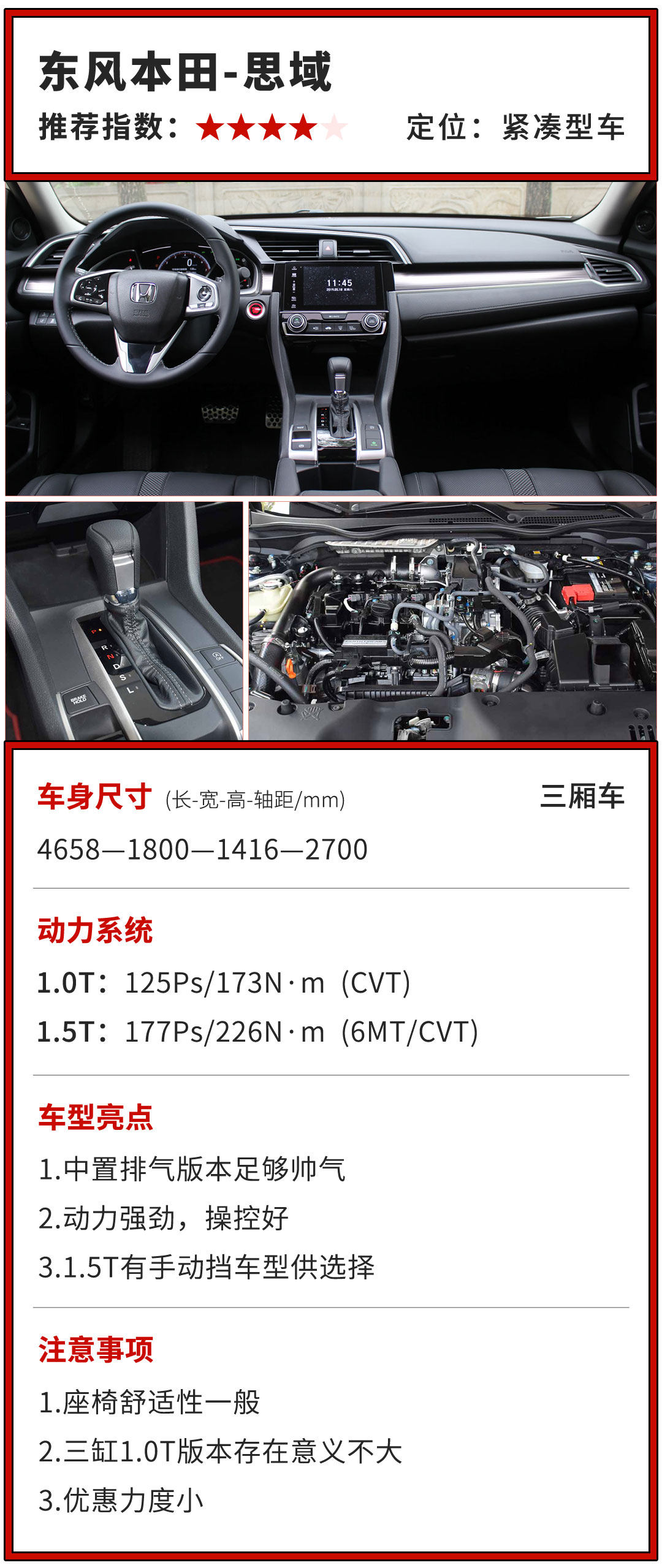 总之,买朗逸最好买新款1.5L自动档,买雷凌最好买1.8L双擎混动(科技版除外),买思域1.5T手动挡最合适,而宝马1系,则必须买2.0T四缸!好了,带着教授的建议,赶紧去这些品牌的4S店体验试驾,遇到喜欢又合适的车就刷卡下单吧!
