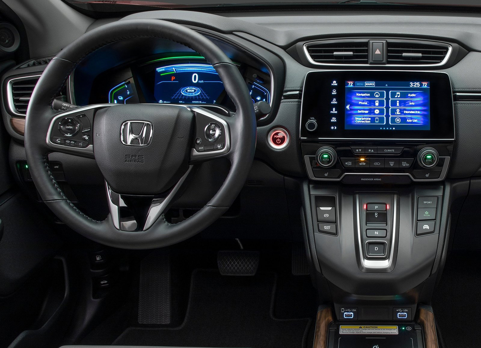 新款的CR-V混动中控设计延续了现款的设计,配备一个7英寸的触摸屏和方便操作使用的物理音量按键,布局赶紧整洁,还不错。本田的这个中控也支持Apple CarPlay,,但不像丰田,安卓用户也有Android Auto可以使用,看来在美国Android Auto很受欢迎啊。