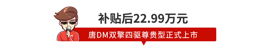 今日,比亚迪唐DM新增车型双擎四驱尊贵型正式上市,补贴后售价区间为22.99万元。新车增加了全黑色铝合金行李架、门框饰条、鲨鱼鳍天线以及后视镜罩等与现款车型无太大差别。此外,新车配备ACC自适应巡航、碰撞预警、车道偏离预警、360度全景影像等主动安全配置;以及DiLink智能网联系统、遥控驾驶、手机远程解锁启动车辆,以及手环寻车、解锁等智能配置,科技感满满。动力上,新车搭载一台2.0T涡轮增压发动机(配6速双离合变速箱)以及一台电机组成。配置上唐DM双擎四驱尊贵型水平基本与三擎四驱中高配车型持平,22.99万元的可谓吸引力十足。