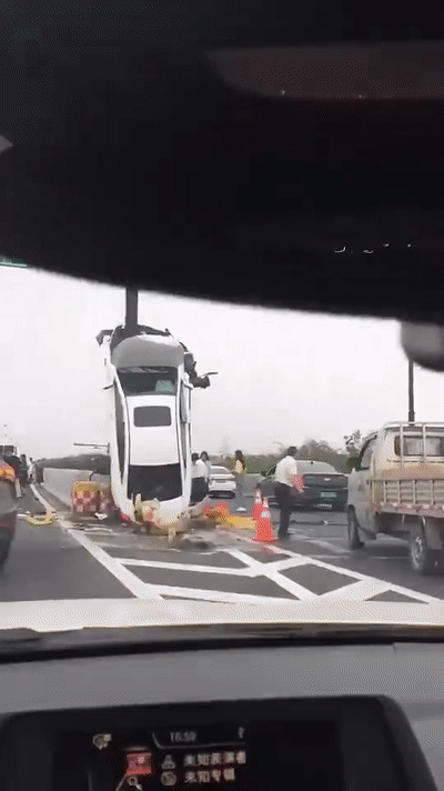 近段时间,一段汽车与路面垂直的视频刷爆网络。大家请看gif图: