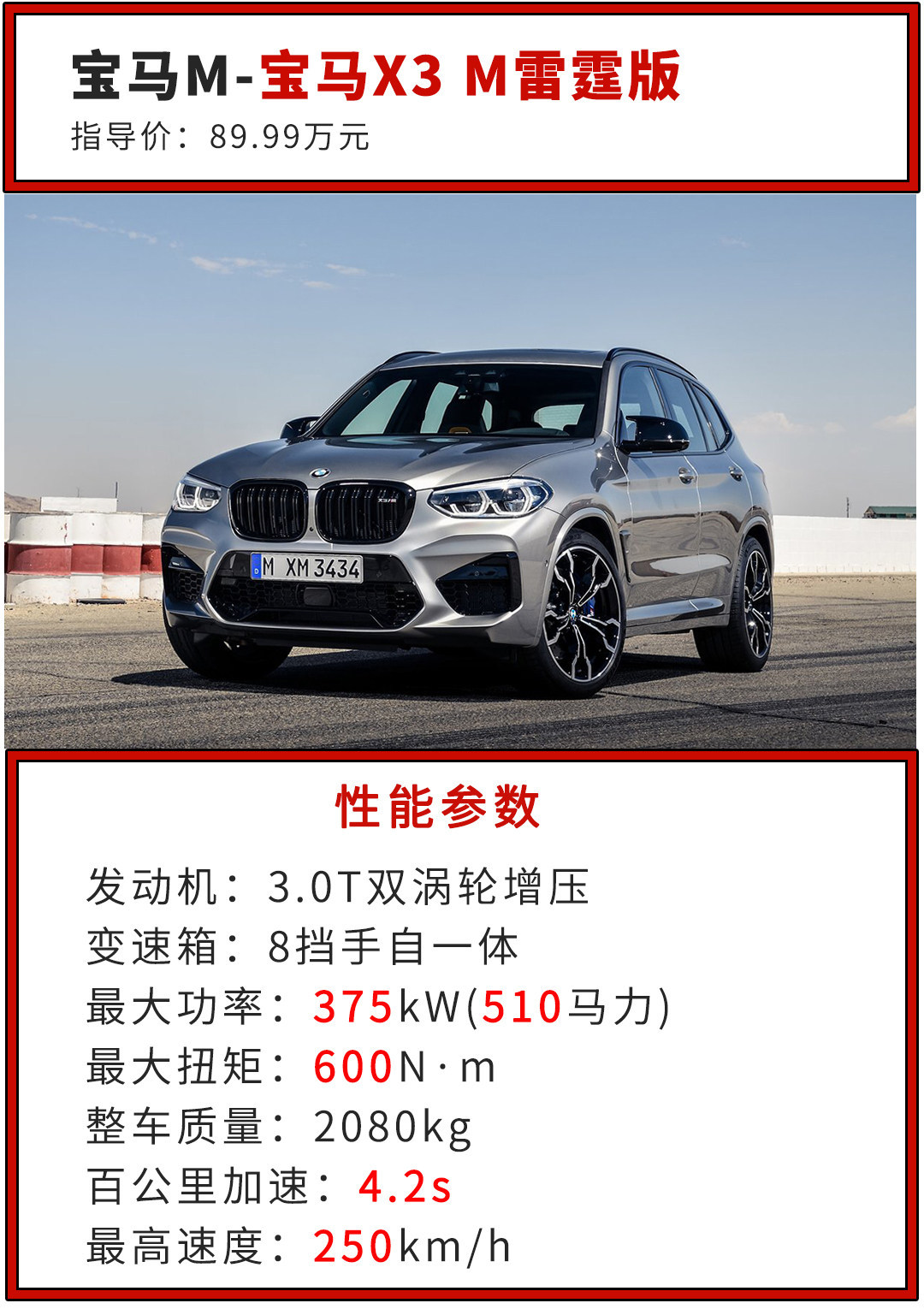 仅需宝马X5 M一半的价格就能享受到4.2s的加速快感,宝马X3 M雷霆版的出现,让更多的玩家能够接触到宝马在性能方面的巅峰之作。
