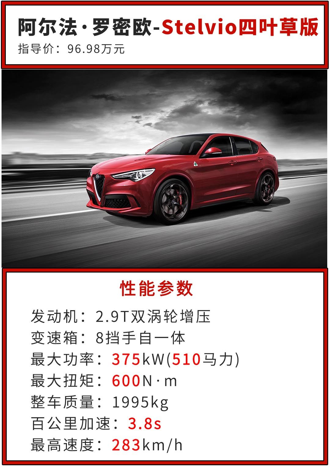 Stelvio搭载了一台源自法拉利的2.9T V6发动机,可以爆发出510马力的最大功率和600N·m的最大扭矩,而来自ZF的8挡自动变速箱,完成一次换挡动作只需150毫秒,两者的完美配合交出3.8秒的百公里加速成绩。