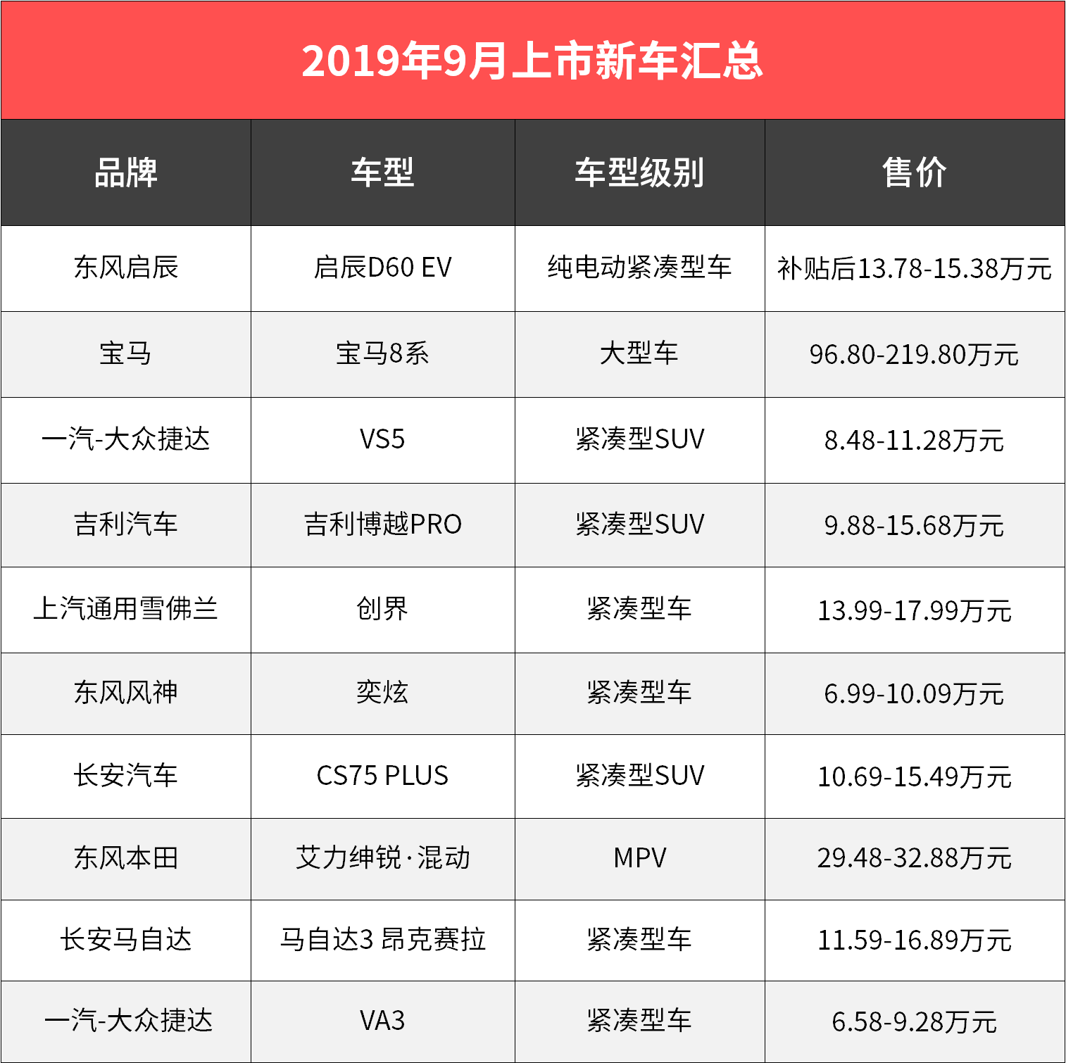 9月上市的新车价格较为亲民,适合普通消费者购买。不管你是个性张扬的年轻人,还是成熟稳重的大叔,还是俏皮可爱的小姐姐,相信这个月上市的新车总有一辆会让你心动的。