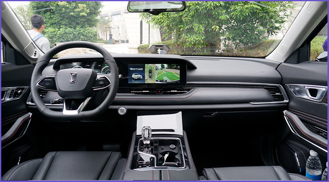 奔腾T99延续了家族式“光影折学”设计语言,大尺寸配合笔直的线条设计让T99整体造型更显霸气硬朗。4800*1915*1685mm的车身尺寸以及2870mm的轴距,让5座设定的T99拥有较为出色空间表现。拥有大面积皮革包覆的内饰在档次感的营造不愧家族旗舰车型的定位,双12.3贯穿式大屏以及触控式空调控制区域所组成的“三屏组合”传递了十足的科技感。