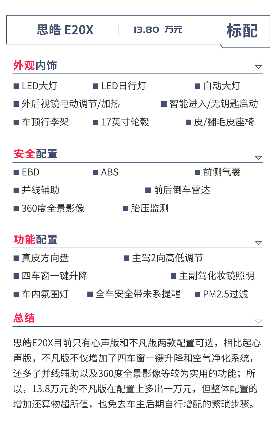 思皓E20X是江淮大众落地之后推出的首个独立品牌车型,之后将会在新能源领域持续发力;不过大众自己也很清楚,E20X更像是对市场的一种试探,未来思皓想要获取更多人的信任,那还得有重磅车型的推出才能得到更多人的关注。