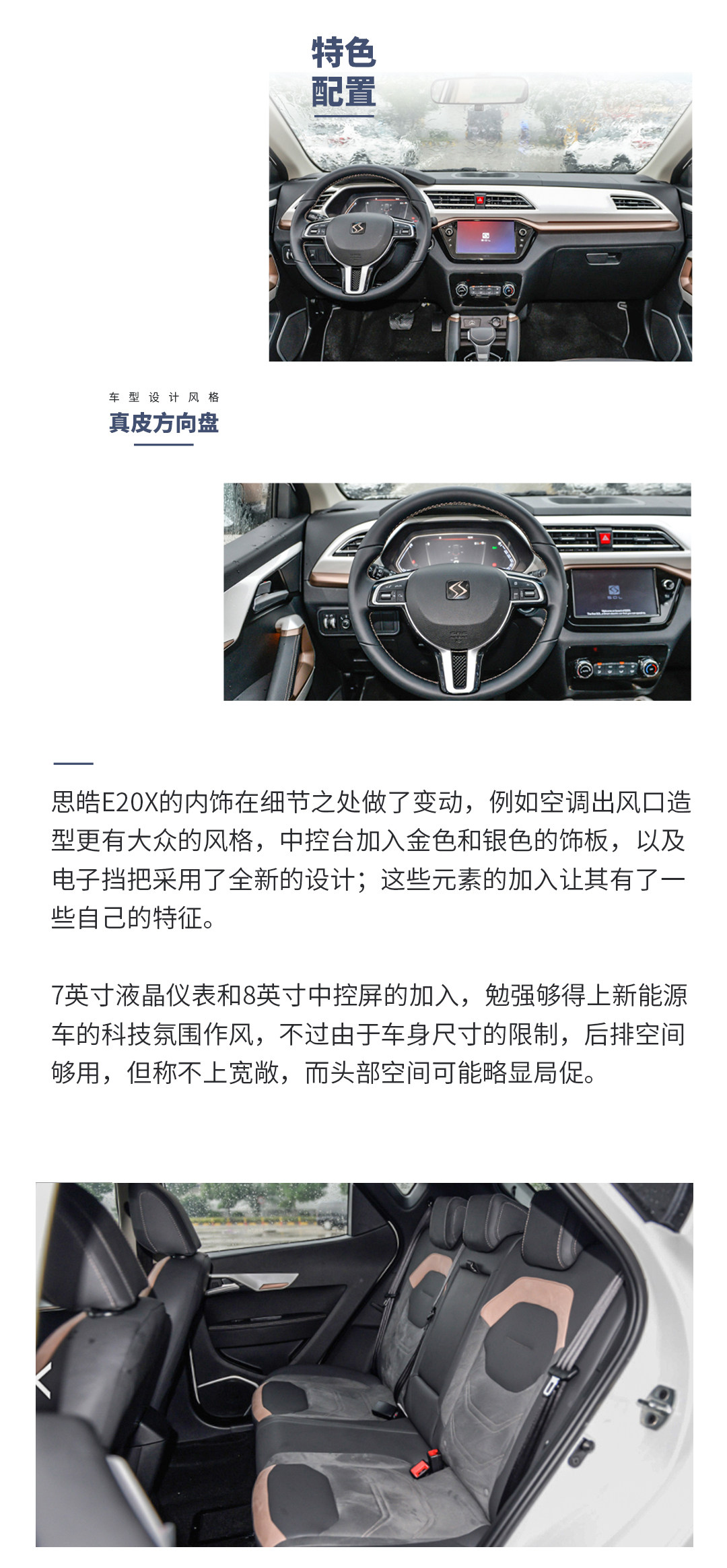 内饰部分思皓E20X基本遵循了原车的底子,不过,在中控台采用银+金色的饰板重新修饰了一顿。