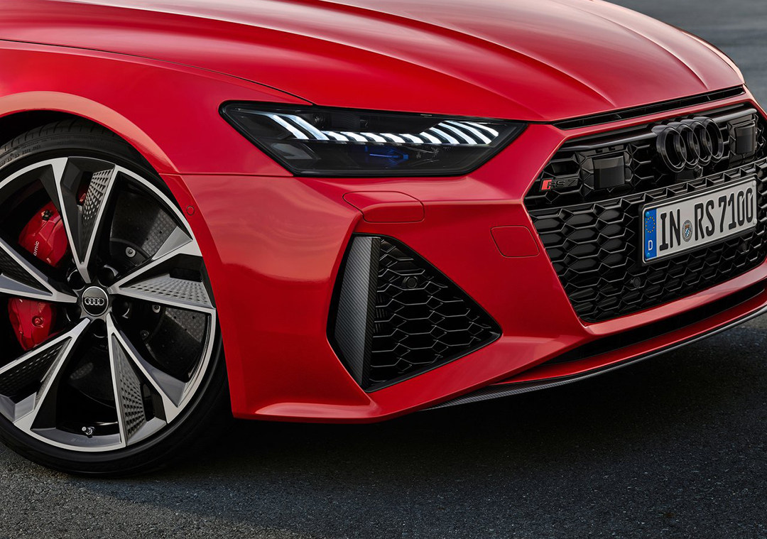 相信细心的朋友会发现,RS7 Sportback的前脸好像在哪见过?没错,就是刚发布不久的RS6 Avant。全新奥迪RS7 Sportback的前保险杠样式十分激进,锐利的线条配合大尺寸的进气格栅让人一看便知道并非善哉,宽度上对比普通版A7 Sportback有40mm增益的RS7 Sportback营造出了更加低趴的效果。