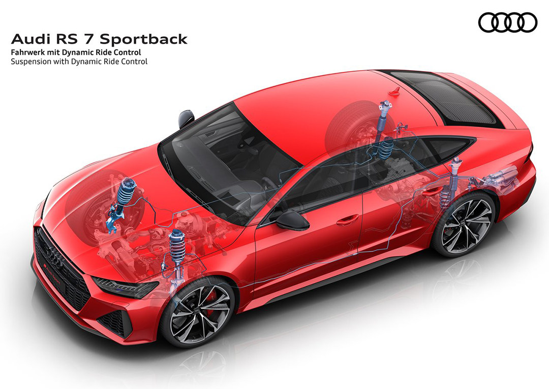除了空气悬挂,RS7 Sportback还提供阻尼可调的RS 运动悬挂搭配DRC系统(Dynamic Ride Control)供选择,据悉该套悬挂能提供更紧致的路感,在激烈驾驶时能更有效抑制车身的侧倾。