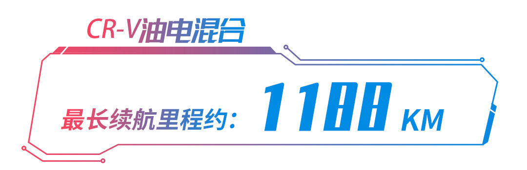 CR-V油电混合版本(油电混合版本官方指导价:22.18-27.68万)工信部综合油耗为4.8L,油箱容积为57L。换算下来CR-V油电混合版本的续航里程约为1188KM。