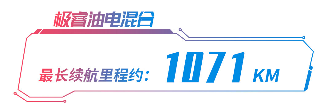 可即便如此极睿油电混合版本(油电混合版本官方指导价:15.38-19.38万)的最长续航里程也超过了1000KM。工信部综合油耗为4.2L,油箱容积为45L。换算下来极睿油电混合版本的续航里程约为1071KM。